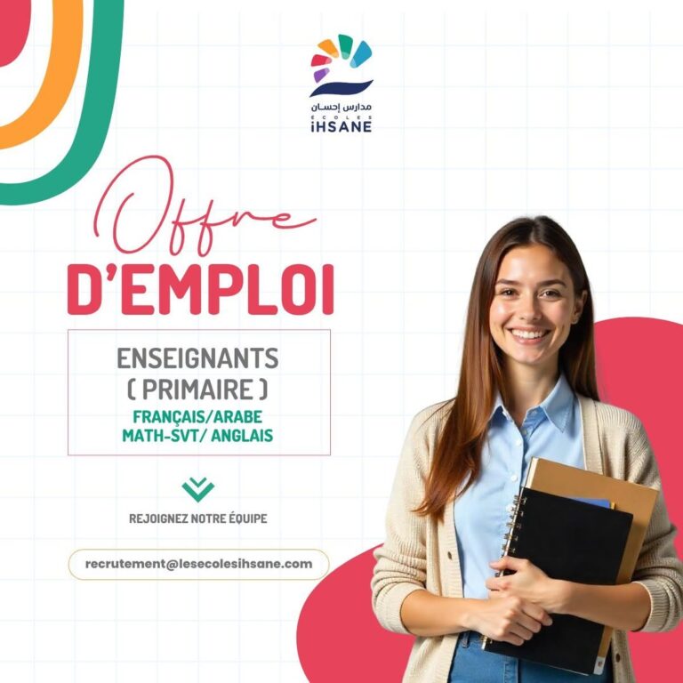 📢 𝐎𝐟𝐟𝐫𝐞 𝐝’𝐞𝐦𝐩𝐥𝐨𝐢 – 𝐑𝐞𝐜𝐫𝐮𝐭𝐞𝐦𝐞𝐧𝐭 𝐝’𝐞𝐧𝐬𝐞𝐢𝐠𝐧𝐚𝐧𝐭𝐬 𝐞𝐧 𝐩𝐫𝐢𝐦𝐚𝐢𝐫𝐞 (𝐀𝐫𝐚𝐛𝐞, 𝐅𝐫𝐚𝐧𝐜̧𝐚𝐢𝐬, 𝐌𝐚𝐭𝐡𝐞́𝐦𝐚𝐭𝐢𝐪𝐮𝐞𝐬/𝐒𝐕𝐓, 𝐀𝐧𝐠𝐥𝐚𝐢𝐬). Dans le cadre du…