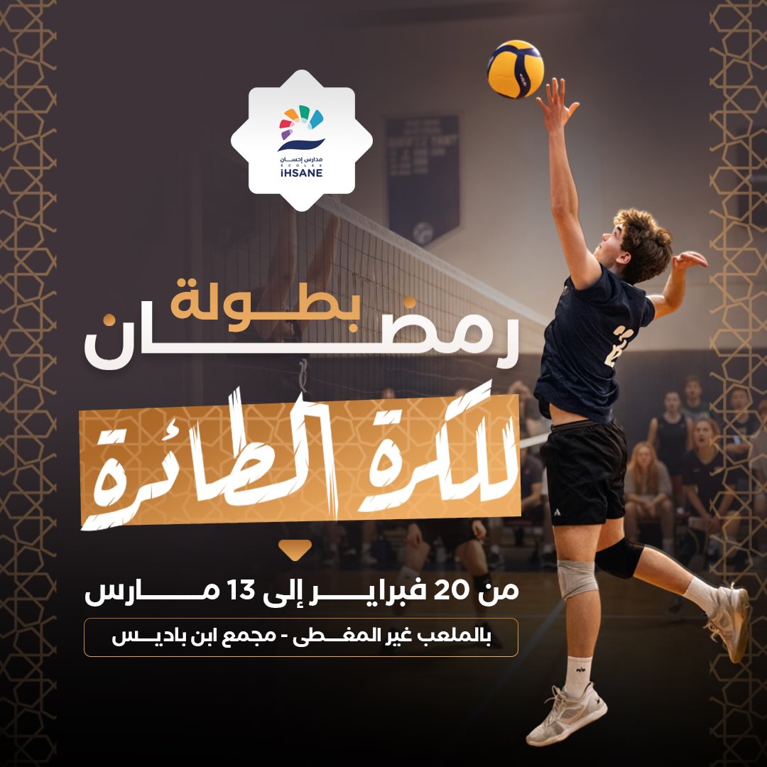 في إطار دعم الأنشطة الرياضية المدرسية وترسيخ قيم التعاون والروح الرياضية بين التلاميذ، ينظم مجمع إحسان بطولة رمضانية في كرة الطائرة، مخصصة لتلاميذ أقسام السنة الثانية بكالوريا.