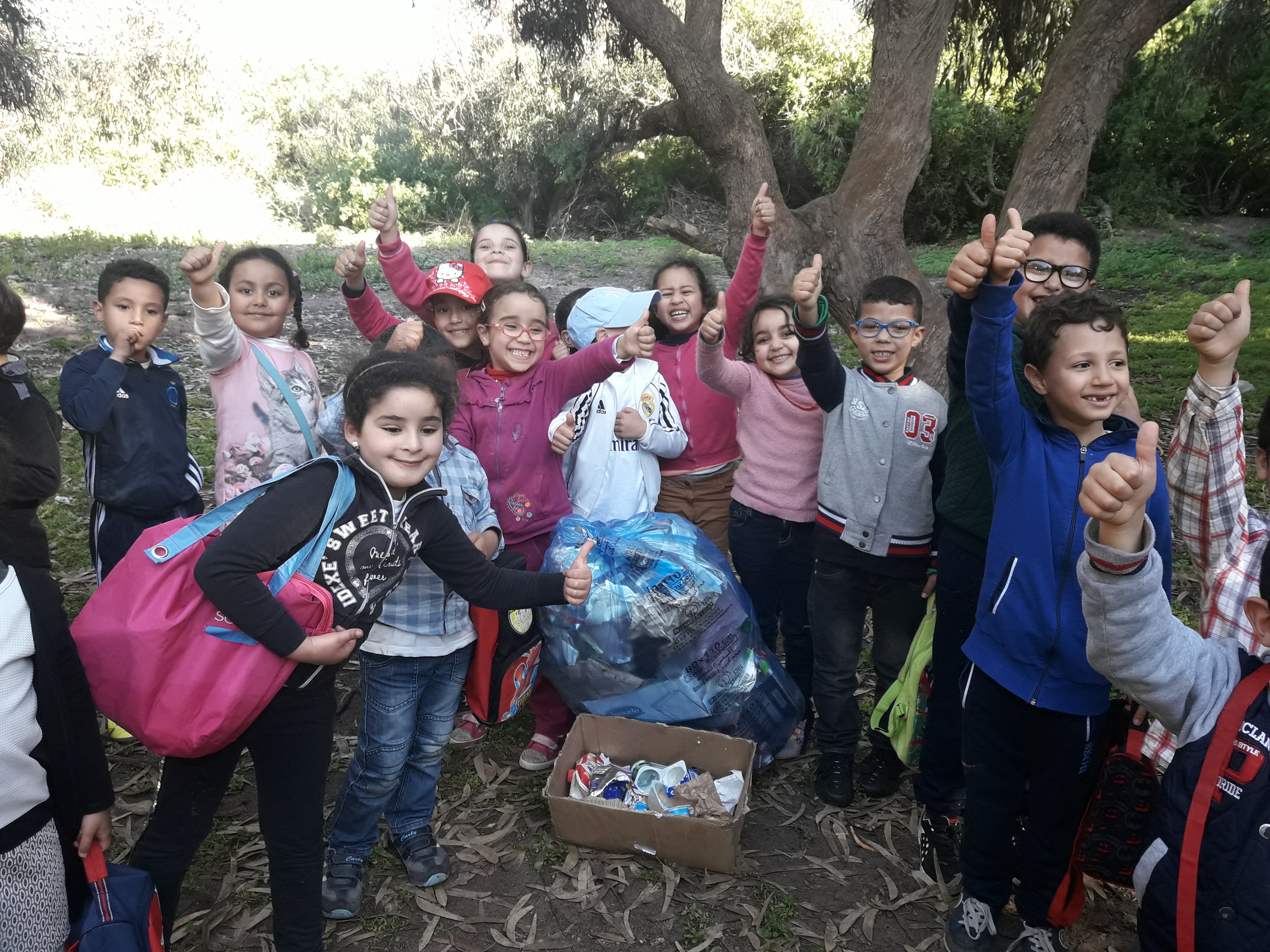 Afin de parcourir une bonne partie de la forêt d’El Haouzia et ramasser ainsi un maximum de déchets, les élèves ont été aidés par les institutrices.