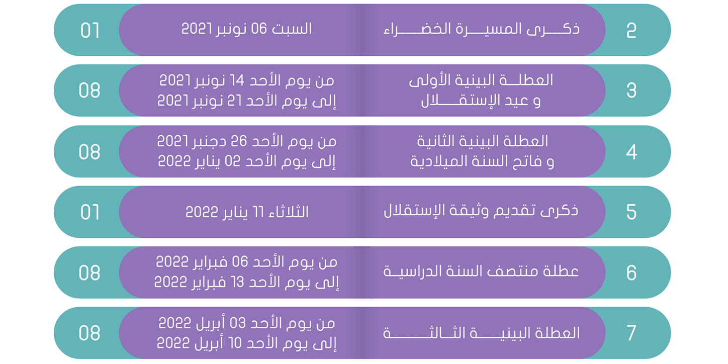 Voici le calendrier des vacances scolaires au titre de l’année scolaire 2021-2022, pour l’enseignement primaire, secondaire collégial et secondaire qualifiant.