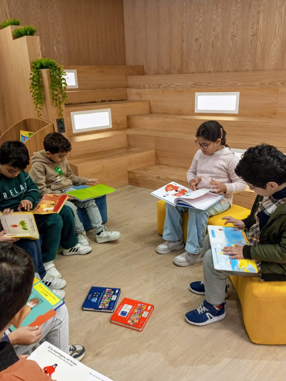 Dans le cadre des activités parascolaires, et afin de réinvestir les apprentissages réalisés en classe, les élèves du CP du Campus Ibn Badis ont participé à une séance d’initiation à la bibliothèque de l’école — un espace qu’ils auront le plaisir de fréquenter régulièrement tout au long de l’année scolaire.