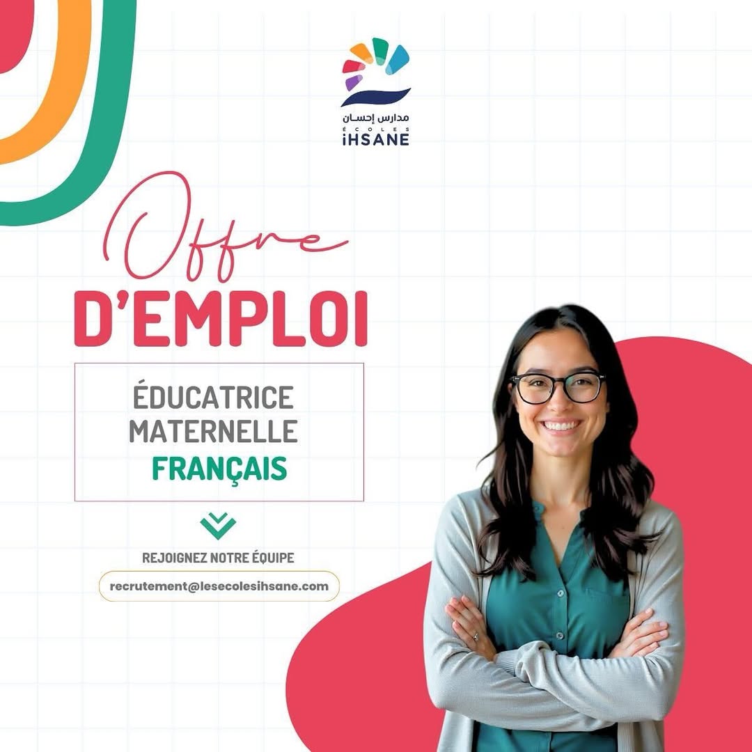 Dans le cadre du renforcement de notre équipe pédagogique pour l’année scolaire 2026-2027, Les Écoles IHSANE recrutent une éducatrice de français passionnée pour sa section maternelle.
