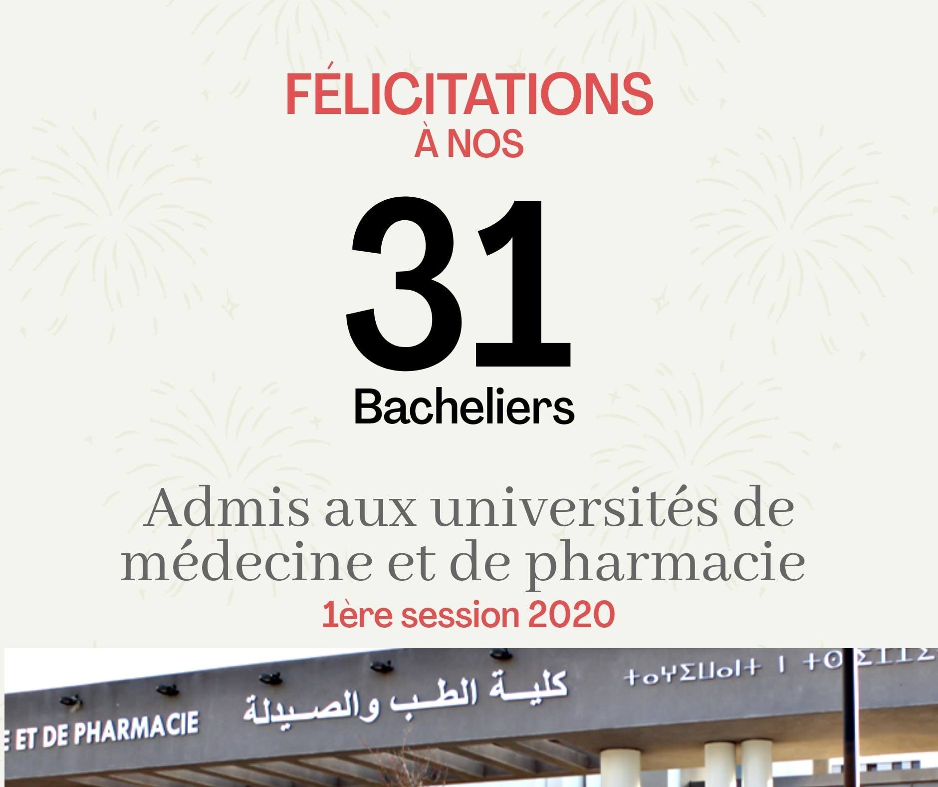 Toutes nos félicitations à nos 31 lauréats qui ont réussi le concours commun pour intégrer l’université de médecine et de pharmacie publique de Casablanca.